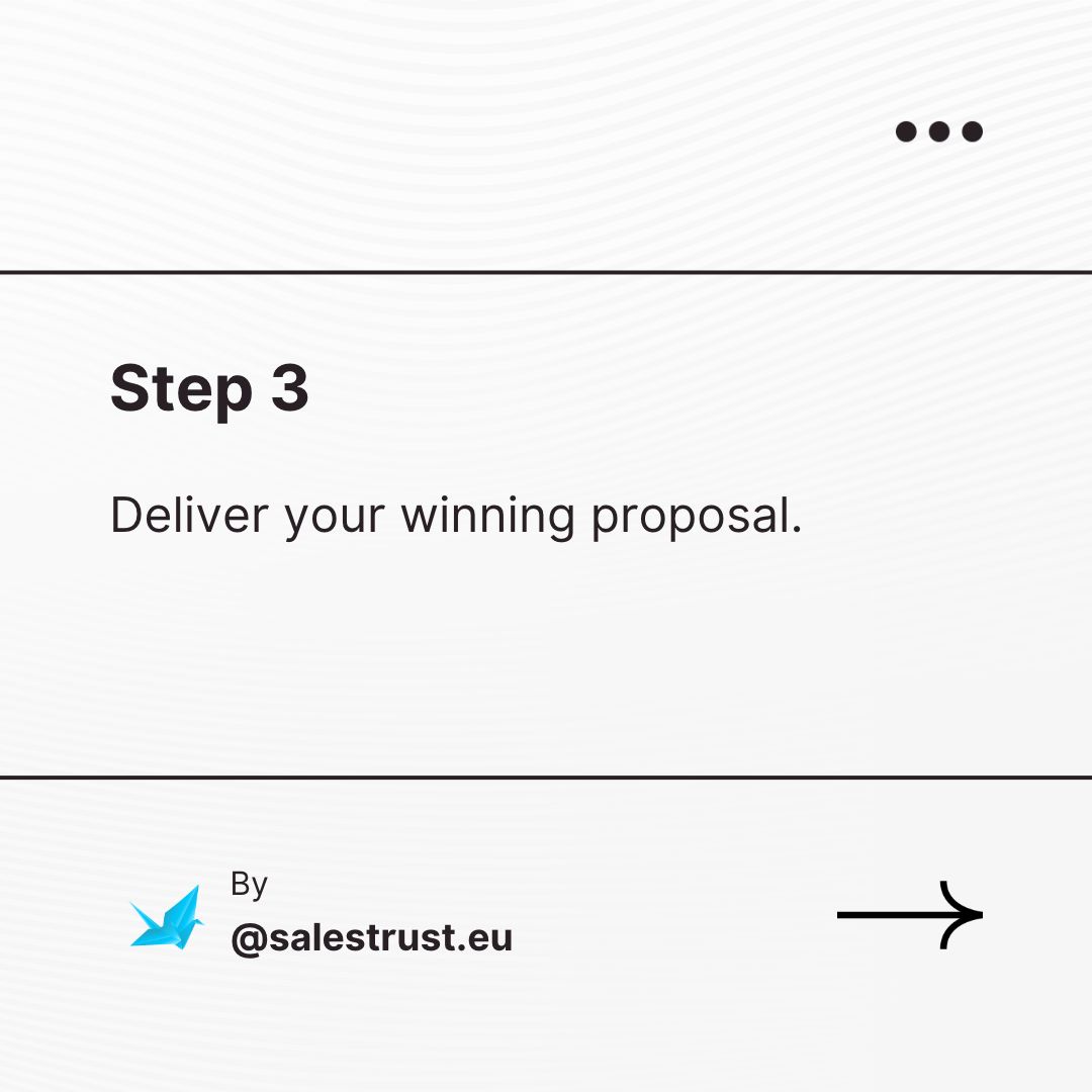 For most purchases of any size a buyer will usually want something in writing before making their decision (ex to show their decision maker or simply to substantiate what the sales person has told them). Sometimes a prospect will contact the sales organisation with an invitation to tender, which must be in writing and delivered in a certain format by a certain date. Sales organisations generally have a standard sales proposal which only requires the changing of the prospect’s name, but there are times when the sales person may need to spend considerable time and effort to produce a carefully crafted and individually focused proposal (some sales companies have teams dedicated to producing large, detailed proposals).